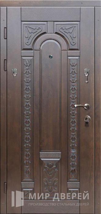 Входная наружная дверь для дачи №12 является идеальным выбором для установки в частных домах, квартирах и офисах. Дверь выполнена в классическом коричневом цвете с отделкой из накладок МДФ как снаружи, так и внутри. Такая отделка не только эстетична, но и устойчива к механическим повреждениям, что обеспечивает долговечность и сохранение первоначального вида двери.